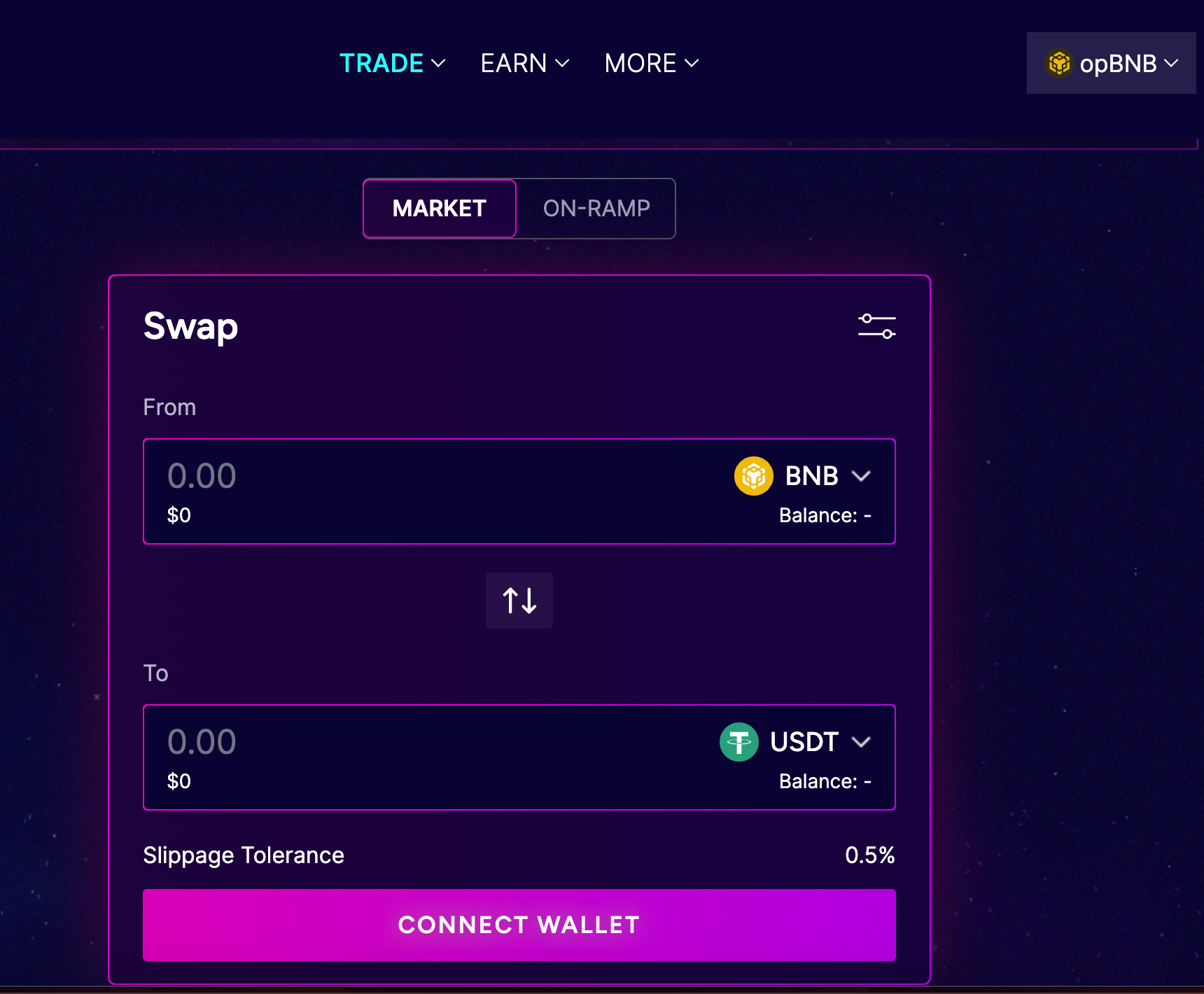 Visit the official opBNB bridge and connect your wallet, making sure you are on BNB Chain.